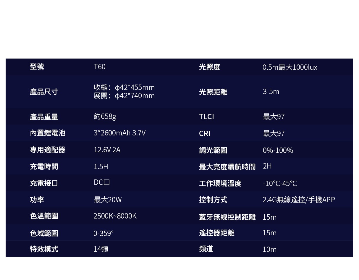 一燈在手,雙倍增亮!杜肯創新研發的伸縮式兩段設計,拉長後可至740mm,讓亮光範圍大大提升、靈活可調。收縮後,T60有著比同類亮度範圍的產品更小的體積,收納更便攜。