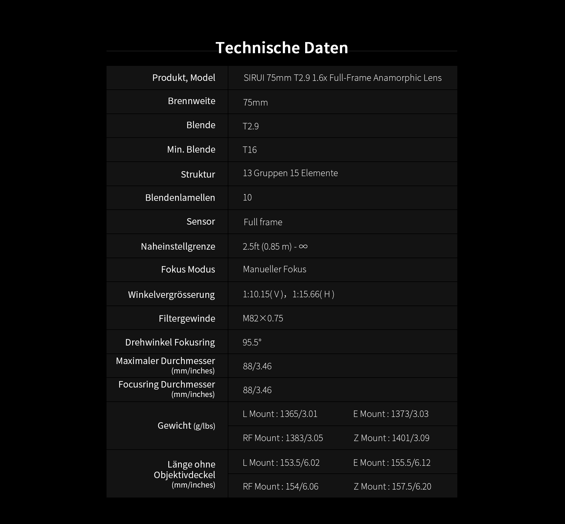 Dieses Objektiv ist mit vier nativen Halterungen ausgestattet,