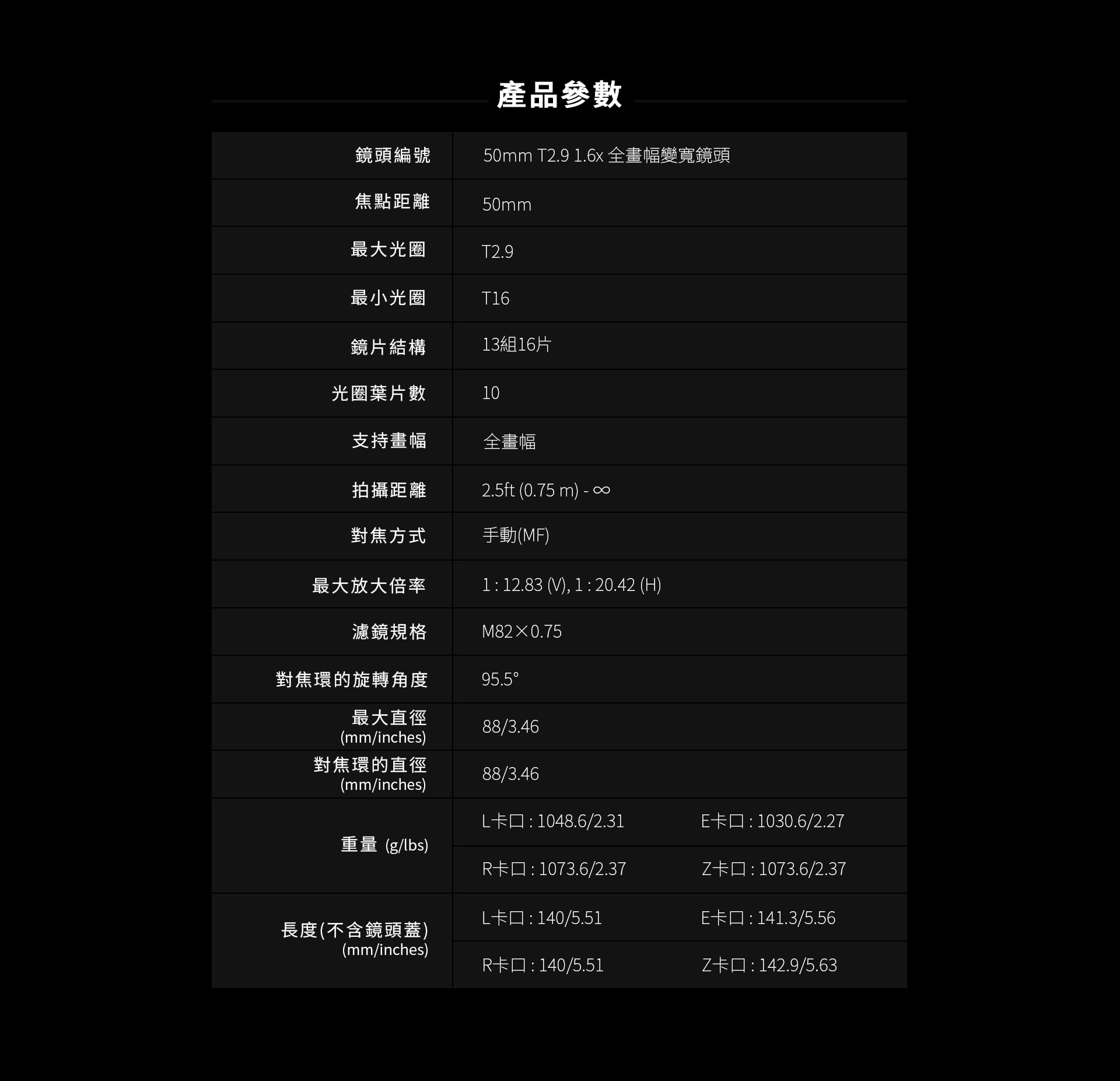 鏡頭配備RF、L、E、Z四款原生卡口,專業的全畫幅視頻機也能搭載,如松下S1H、RED KOMODO、索尼FX3、尼康Z6等。思銳全畫幅變寬鏡頭的升級,僅需普通球面鏡的價格,這不可思議的性價比正再次席捲變寬影像圈,你的導演夢觸手可及!